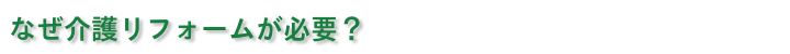 年齢を重ねると運動能力や感覚機能の低下など、身体の機能には様々な変化が生じてきます。家庭内のわずかな段差や、階段・浴室などでの転倒・転落により、打撲や骨折などの大きなケガをして、入院や寝たきりになることがあります。また65歳以上の事故死の内、家庭内事故は30%を占め、その内住宅が原因とされるものが半数を占めています。高齢者の方が住む家は、築年数も古く老朽化しており、問題を多く抱えていることが多いため、リフォームをする効果も大きくなります。