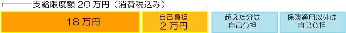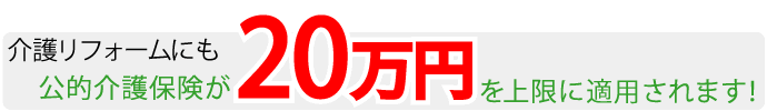 介護保険の給付には、保険者(市町村)が行う要介護認定を受けることが必要です。要支援の人も要介護が1~5の人も共通で、住宅改修の ための給付は一生で上限20万円までとなります。その1割に当たる2万円が自己負担となります。一度で全額使い切らない場合は、数度に分 けて使うこともできます。ただし要支援・要介護認定区分が3段階以上あがったときか、転居した場合は改めて上限20万円までの給付を受ける ことができます。